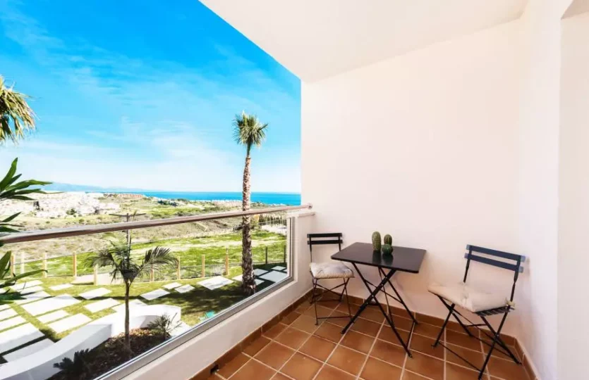 Resort apartments Manilva are available in four configurations. Each are light and bright with a balcony overlooking the manicured gardens and lovely pool areas.