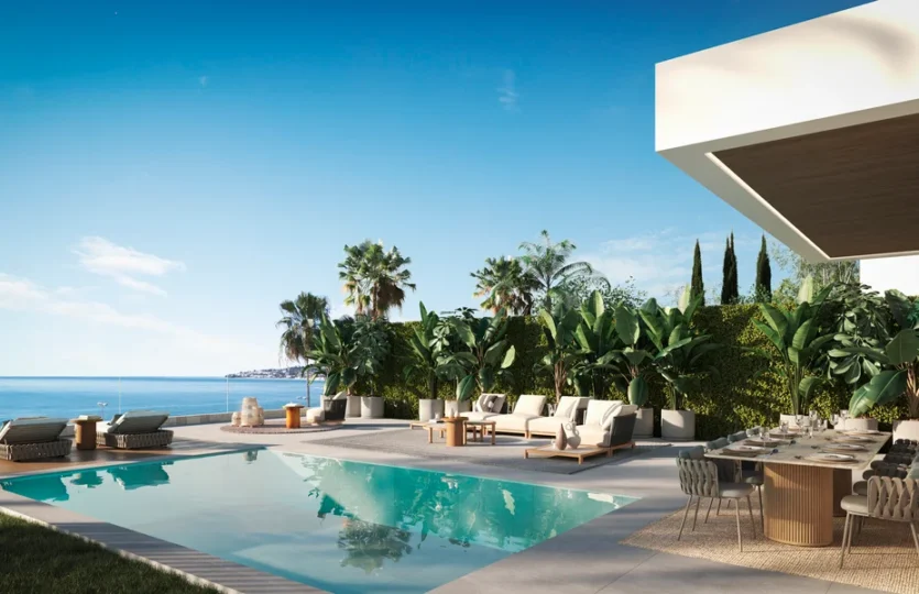 Outside is every bit as captivating. Landscaped gardens invite barefoot strolls and private pools reflect the endless blue of the sky. An optional jacuzzi on the solarium creates the perfect spot for total relaxation, with the soft murmur of the sea in the background. At WaveView, nature isn’t just a backdrop; it’s part of the home.